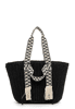 Selbstbewusst und 'frey' - SURI FREY Eine Handtasche ist wie eine gute Freundin, sie lässt einen nie im Stich und steht zuverlässig zur Seite. Mit SFY Jemmy - dem schicken Shopper aus Papier mit Fransen - ist die liebste neue Wegbegleiterin immer dabei. Ob für Büro, Uni oder in der freien Zeit - mit ihm lässt sich einfach jedes Abenteuer bestreiten. Das Modell besteht aus Papier und lässt sich mit Kordelzugverschluss verschließen. Die Bast-Optik und das zweifarbige Design sind fein gearbeitet und verleihen dem Shopper einen edlen Look. SURI FREY kennt die Wünsche ihrer begeisterten Kundinnen genau und sie weiß, was sie alle verbindet - Offenheit, Lebensfreude und Freundschaften. Und genau das spiegeln die Produkte des angesagten Modelabels wider. Ordnung ist das halbe Leben. Ein übersichtliches Hauptfach sind in der Tasche integriert. Das Modell SFY Jemmy ist von der Haptik eher fest, sodass Sachen, die nicht geknickt werden sollen, sicher transportiert werden. Für das gewisse Extra sorgt die Applikation mit den Fransen, die zum verspielten Blickfang wird. Dieser neue Lieblingsbegleiter wird zwei Tragegriffen einfach und bequem als Schultertasche getragen. Viel Platz für alles, was unterwegs dabei sein muss, bietet der Shopper.